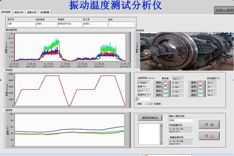 主要功能: 1、實時曲線監測振動、溫度數據; 2、振動溫度數據可查詢歷史曲線; 3、實時顯示振動波形 點數 分析頻率可選; 4、歷史記錄可分析某一時刻振動時間波形和FFT頻譜圖等; 5、可進行變頻器(施耐德)簡單測試過程控制。