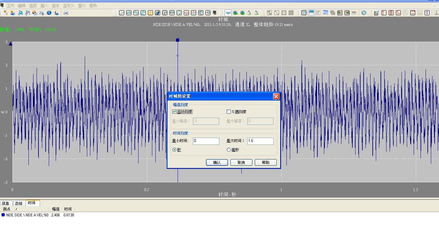 頻率:軸承各固有頻率; 圖像:設(shè)備照片及其上安裝的傳感器; 頻段:設(shè)置各頻段速度幅值的報警值; 包絡(luò):設(shè)置各頻段加速度包絡(luò)幅值的報警值; 消息:歷史報警記錄; 注記:設(shè)備病歷卡; ● 數(shù)據(jù)算法模塊具有以下功能: 1)對原始數(shù)據(jù)進(jìn)行FFT變換; 2)計算加速度包絡(luò)等; ● 圖形分析模塊具有以下功能: 系統(tǒng)能展示以下四種圖形: 1)時域圖:圖形縱坐標(biāo)自動按數(shù)據(jù)峰值調(diào)整,使圖形顯示在坐標(biāo)系中間部位。圖形要能放大、縮小,可以選擇查看某個數(shù)據(jù)包,圖形能疊加單一光標(biāo)、周期光標(biāo)等分析工具,光標(biāo)移動到那里,信息窗顯示該點相應(yīng)數(shù)據(jù);
