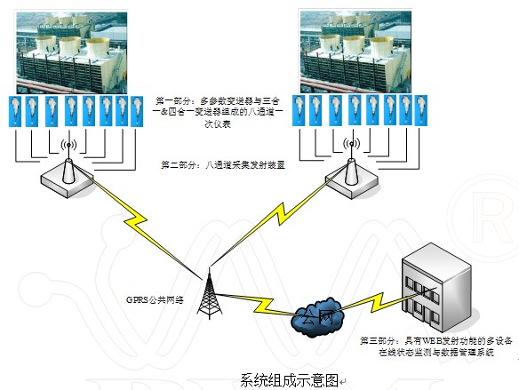 BVM-302GPRS無線監測系統 簡介:該系統由GPRS通訊模塊,采集模塊,變送器、數據處理中心幾部分組成,適合比較分散的設備監測,如水塔 風塔 路燈等。監測軟件是B/S方式,具有固定法IP地址或者固定域名的服務器以WEB 方式進行顯示記錄監測數據。