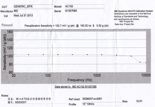 NOTE: 1、本傳感器的靈敏度是通過背靠背的方式進行相對較準,其標準傳感器可追溯至NIST; 2、本傳感器輸出結果為原始振動信號,可采集波形; 3、本傳感器可選擇不同長度的導線,建議長度小于30m; 4、激勵恒流源切忌過載。